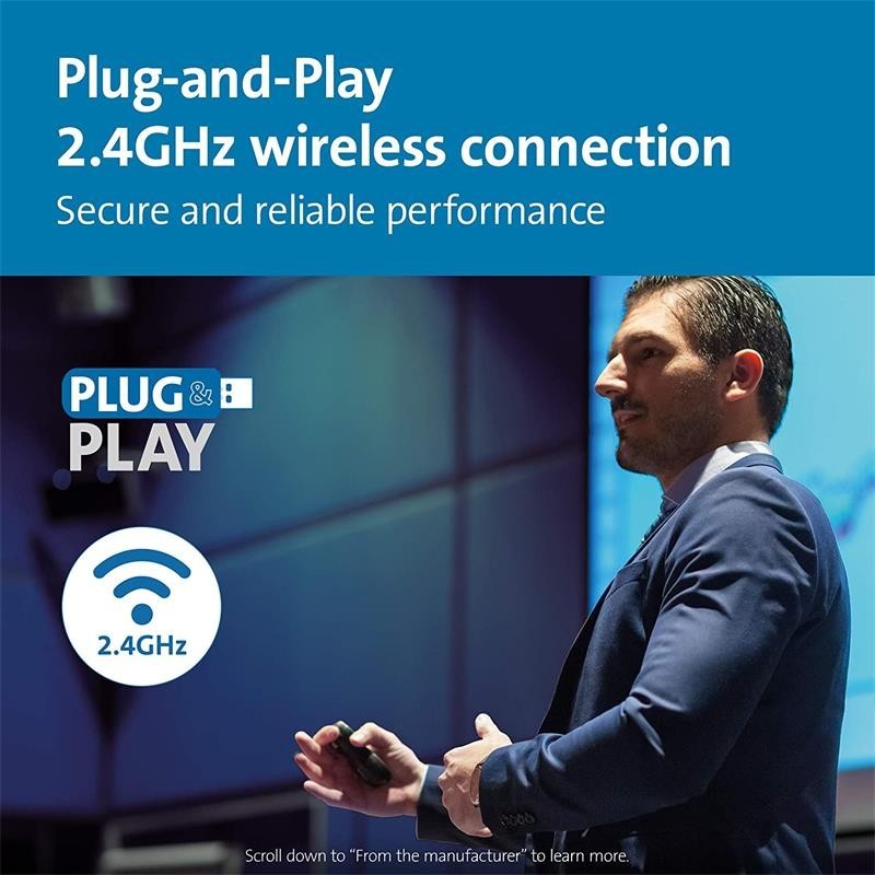 Los profesionales cuentan con Kensington para el control de sus presentaciones. Con una conexión inalámbrica altamente confiable y controles intuitivos, este control remoto le permite concentrarse en lo que más importa: hacer una presentación efectiva.